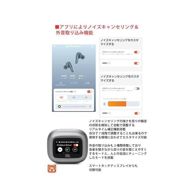 JBL LIVE BEAM 3 ワイヤレスイヤホン スマート充電ケース/LDAC対応ハイレゾ/マルチポイント/ハイブリッド ノイズキャンセリング/IP55防水/ワイヤレス充電対応/シルバー/JBLLIVEBEAM3SIL | つむぎ屋