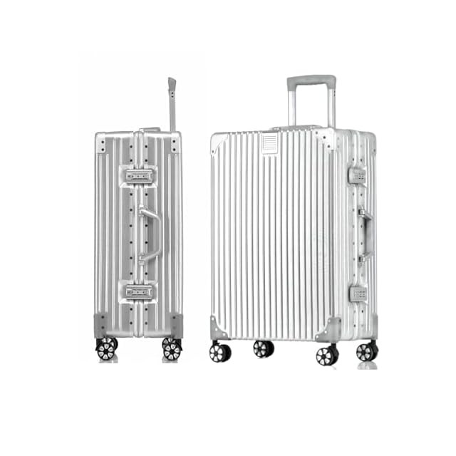 [WanderMore] スーツケース キャリーケース キャリーバッグ 機内持ち込み 大型 アルミフレーム シルバー 超軽量 大容量 耐衝撃 TSAダイヤロック レトロ 360度回転 静音 ダブルキャスター ビジネス 旅行 出張 Lサイズ 7泊 78L(5サイズ対応) | つむぎ屋