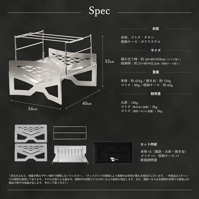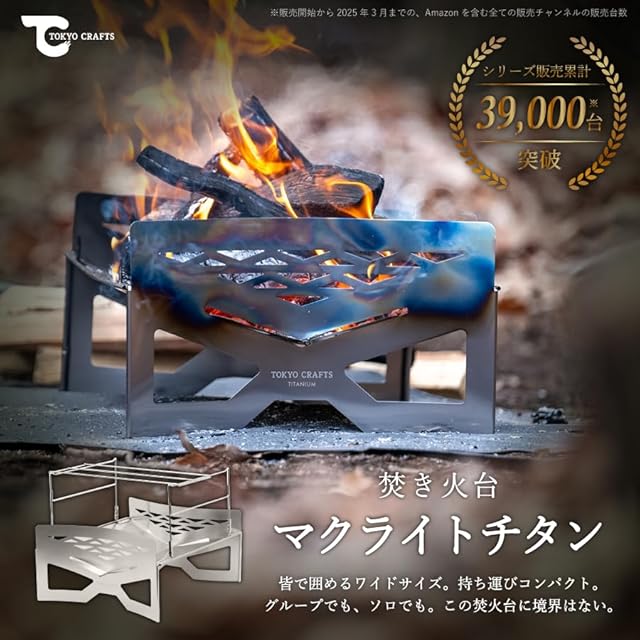 TOKYO CRAFTS マクライト2 焚き火台 【コンパクト/大型/軽量/薪割り不要/組み立て簡単/ゴトク付き】 ソロ ファミリー 焚火調理 火力調整不要 (チタン製/マクライトチタン) | つむぎ屋