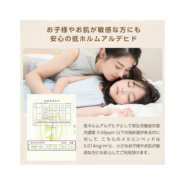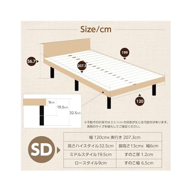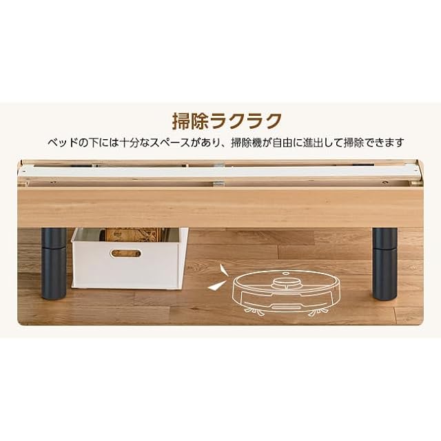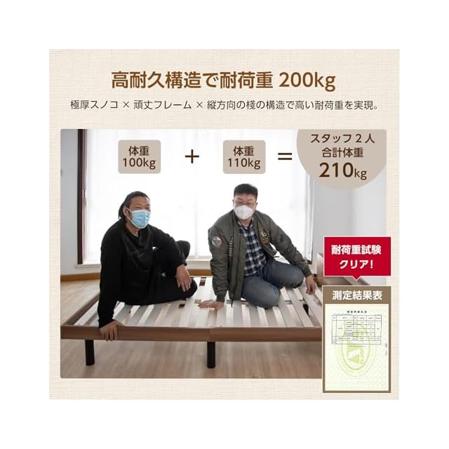 【9センチのサイドフレーム、頑丈な構造】9センチのサイドフレームで耐荷重UP。メラミン樹脂化粧パーティクルボードの堅牢な構造で、安定性と耐久性があります。耐久性に優れたLVL積層合板のすのこを使用しています。安定した寝心地を提供します。