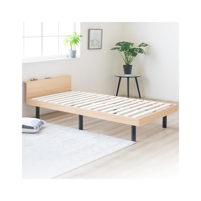Major In Life ベッド 宮付き ベッドフレーム 宮棚付き シングルベッド 木製 すのこ ヘッドボード完成 2口コンセント 3段階 高さ調整 ロースタイル 耐荷重200kg (ナチュラル, セミダブル 3段階調整) | つむぎ屋