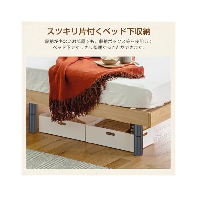 【高さ3段階調整機能】ベッドの高さをお好みに合わせて調節できます。おしゃれでナチュラルなロースタイルのデザインが、お部屋に温かみと個性を与えます。
