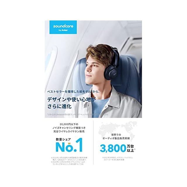 Anker Soundcore Space Q45(Bluetooth 5.3 ワイヤレス ヘッドホン)【最大65時間音楽再生 / ウルトラノイズキャンセリング2.0 / LDAC/ハイレゾ対応 (ワイヤレス/有線) / マルチポイント対応/外音取り込み/マイク内蔵】ネイビー | つむぎ屋