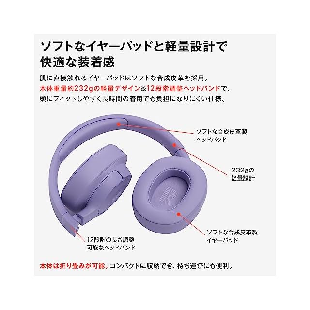 ソフトなイヤーパッドと約232gの軽量設計で快適な装着感
