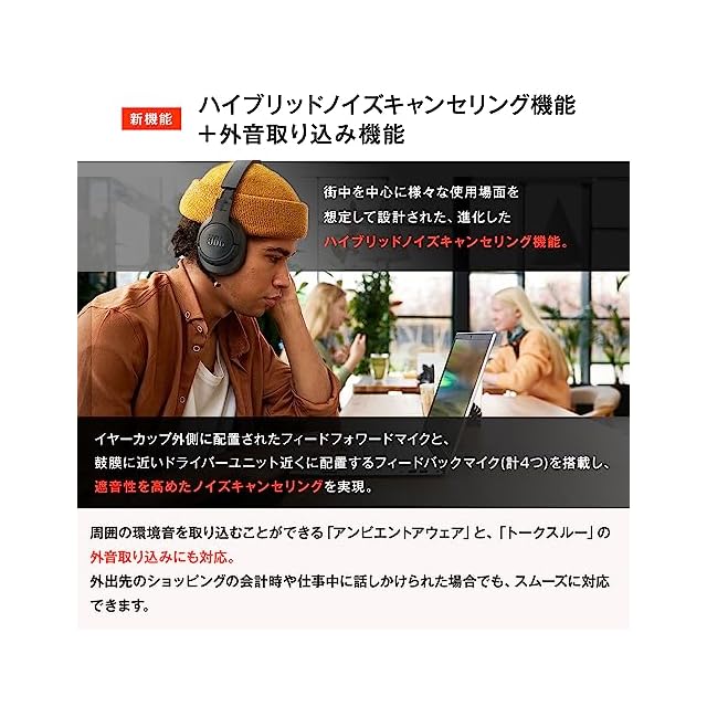 ハイブリッド式ノイズキャンセリング機能で味わう上質なJBL PURE BASSサウンド