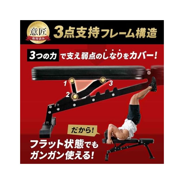 契約プロトレーナーの監修に基づく構造設計フラット運動時に背もたれのしなりを防ぐ三点フレーム構造
