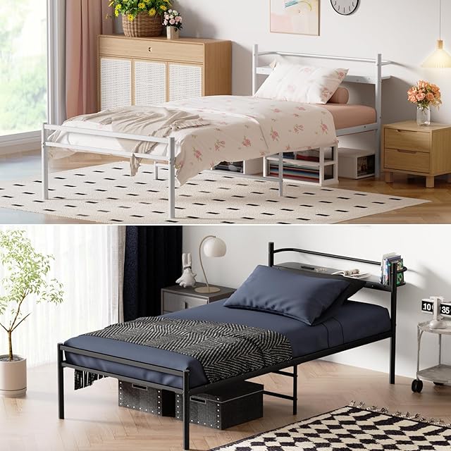 【耐荷重300Kg・2口コンセント】ベッドフレーム シングル Holdm シ ングル ベッドフレーム コンセント付き 宮棚 パイプベッド 静音 頑丈なべっどふれーむ 棚付き ヘッドボード 床下収納高さ30cm 組立簡単 スチールベ ッドフレームのみ(シングル, ブラック) | つむぎ屋
