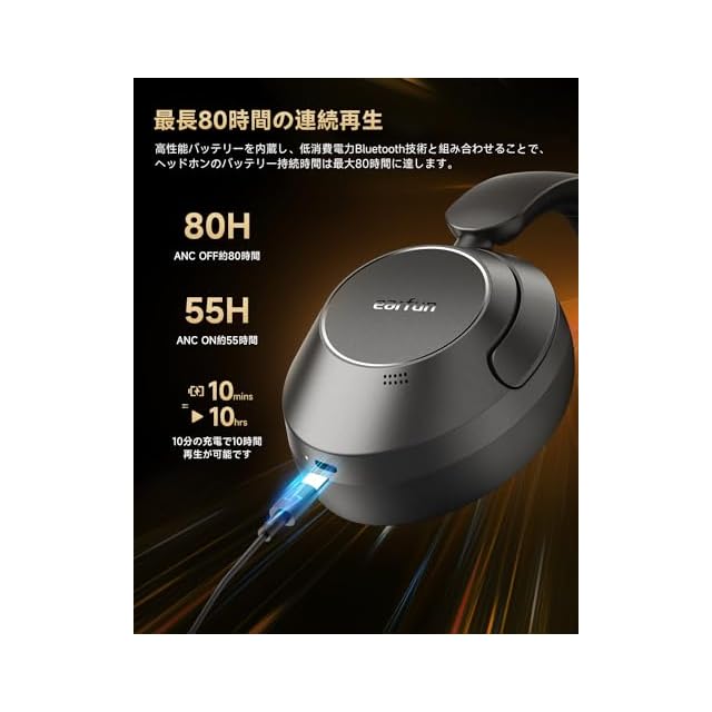 【-45dBのアクティブノイズキャンセリング】ハイブリッド式ノイズキャンセリング技術を利用し、優れた密閉型イヤーカップデザインを採用し、ノイズキャンセイリングの深度はさらに45dBに向上しています。これにより、飛行機、地下鉄、バスなどの日常生活での複雑な騒音環境に自在に対応し、耳に静寂と音楽だけが残ってくれます。⏲【クリアな音声通話】イヤーカップには、ANC用を含め高性能小型マイクが計5基内蔵され ており、ENC+AI通話ノイズキャンセリング技術との完璧な組み合わせにより、通話中の周囲のノイズを効果的に削減 し、人の声をクリアに保ちます。