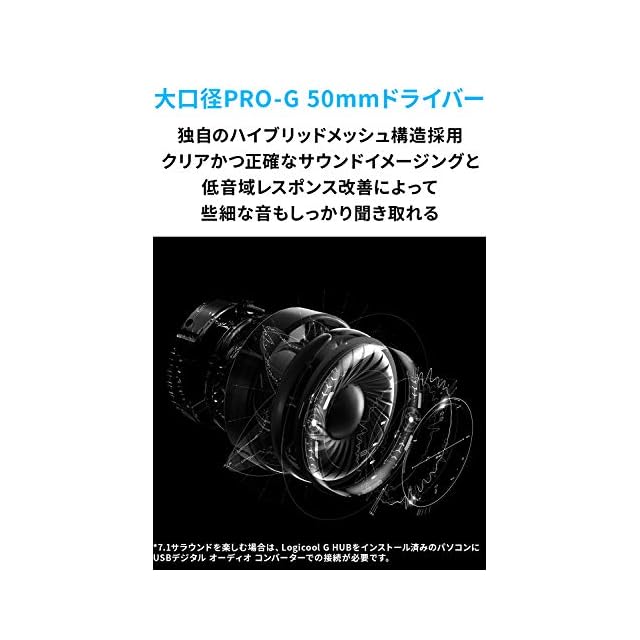 ロジクール独自の50㎜大口径オーディオドライバー「Pro-G」で迫力のある音響を楽しめる/音の歪みを低減し、低音はさらに深みを増す/音量を上げすぎなくても微かな足音がしっかり聞こえる