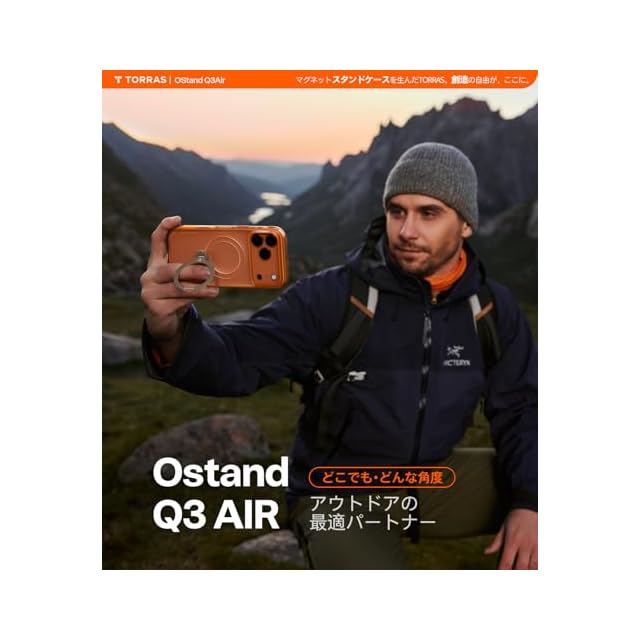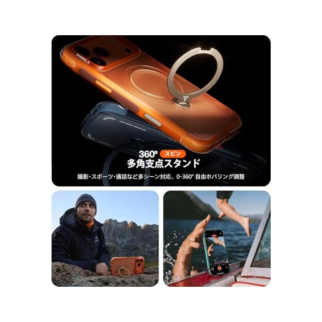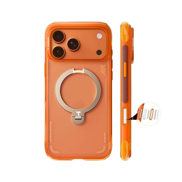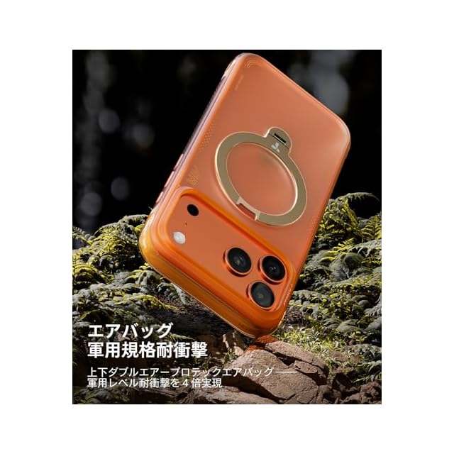 TORRAS iPhone 17 Pro Max 6.9 インチ 用 ケース【エアバッグ 超強保護・米軍 MIL規格 】リング スタンド MagSafe対応 Ostand Q3 Air 360°定点回転 縦横両対応 MagSafe対応 ワイヤレス充電 カメラコントロールボタン付き 登山・アウトドア活動 暁・オレンジ | つむぎ屋