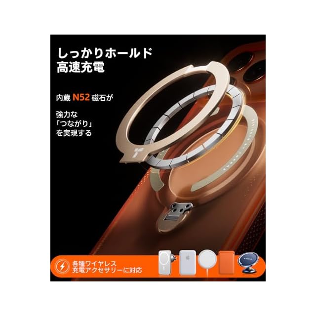 【超強磁力 125% UP!MagSafe と完璧シンクロ!】iPhone 17 Pro Max 6.9 インチ 用 ケースは、独自開発の「ハルバッハ配列」技術と最高級 N52SH ネオジム磁石を融合,磁力が標準磁石の 125% に強化!MagSafe 対応充電器、モバイルバッテリー、カーホルダーに瞬時にピタリ吸着し、Magsafe 対応アクセサリーとの互換性も万全。5000 回以上の着脱試験を通過した耐久性に加え。高速道路の急加速・急減速や自転車の段差越えといった激しい振動でもガタつき・落下ゼロ。車でのナビゲーション時は、ダッシュボードのホルダーに吸着して片手で操作可能。自宅では充電スタンドに置くだけでワイヤレス充電開始、ケーブルの絡みを解消。オフィスのロッカーに固定して通知を確認したりと、場所を選ばず「ケーブルレスの自由」を体感。充電と固定を一挙に実現する強みで、移動中も静止中も、手放しでスマホの可能性を広げてくれる。
