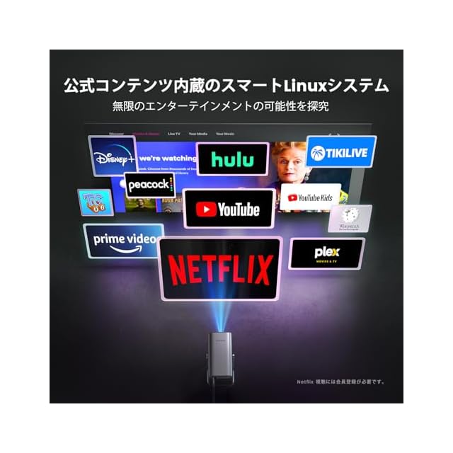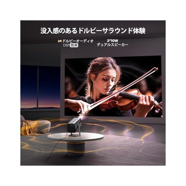 ➤【究極の体験!Netflix公式認証ホームプロジェクター】 Netflixの公式ライセンスを受けたこのスマートプロジェクターは、HDCPの制限を突破し、海賊版コンテンツによる黒画面のリスクを排除します。Netflix、Prime Video、YouTube、120万本以上の動画にワンタッチでアクセス。内蔵のOpen Browser、私のアプリ、APP ストアで、娯楽を自分好みにカスタマイズできます。この家庭用プロジェクターは定期的にアップデートされ、最新の機能を利用できるようになり、アプリの安全性と安定性が強化されます。このホームプロジェクターは公式ドルビー認証をサポートし、映画の中心に入り込むような没入感のある3Dサウンド体験を実現します。最先端のAIサウンドバランス技術と組み合わせることで、詳細な音質と滑らかな音響効果を実現します。