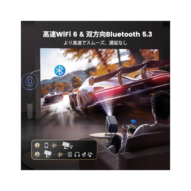 ➤【WiFi 6&双方向Bluetooth 5.3】4kプロジェクターは最新のWIFI 6を搭載し、5G / 2.4GデュアルバンドWiFiをカバーし、iOSおよびAndroidの携帯電話、iPad、ラップトップに簡単にワイヤレスで接続できます。さらに、Bluetoothプロジェクターは双方向Bluetooth 5.3をサポートしており、外部のBluetoothスピーカーやヘッドフォンに接続できます。独立したBluetoothステレオとして使用することも、外部スピーカーに接続して総合的な没入型サウンド体験を楽しむこともできます。