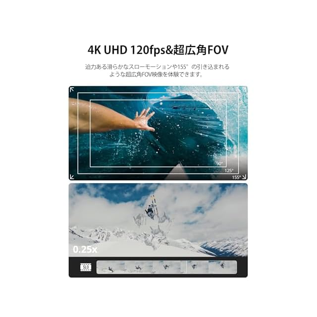 ✅[4K/120fps & 155º 超広角FOV ]- スポーツシーンも、4Kの高解像度と広角FOVで撮影でき、一人称視点の迫力ある映像を撮影します。鮮明なスローモーション映像でスポーツシーンを捉えましょう。