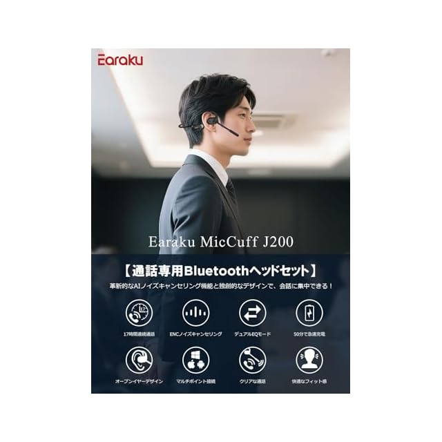 【うるさくても通話はっきり!10分充電で12時間通話可能】Earaku(イアラク) Bluetooth ヘッドセット ENC高精度ノイズキャンセリング 超クリアな通話 通話専用ヘッドセット 50分急速充電 最大19時間連続再生 デュアルEQモード切替可 オープンイヤーヘッドホン 270° 回転マイク DSP チップ内蔵 Bluetooth 5.3 超軽量 テレワーク/Web会議/ビジネス用 | つむぎ屋