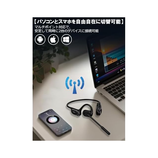 【2台同時接続対応Bluetoothヘッドセット】この Bluetooth ヘッドセットは、マルチポイント接続機能であなたの多忙な一日をサポート!Android、iOS、Windows など、最大 2 台のデバイスを同時に接続できます。オフィスではパソコンでオンライン会議に参加しながらも、スマートフォンからの重要な電話にも素早く対応できます。デバイスを切り替える手間がなく、作業効率が格段にアップします。休日には、PC で映画を鑑賞しながらも、スマートフォンからの LINE やメールの通知も逃さず確認できます。複数のデバイスを使い分けるビジネスパーソンはもちろん、日常生活でも便利なマルチタスクを実現します。シンプルで洗練されたデザインは、オフィスでも外出先でも目立たず使えます。あなたのライフスタイルをもっとスマートに、快適に変えてくれるヘッドセットです!