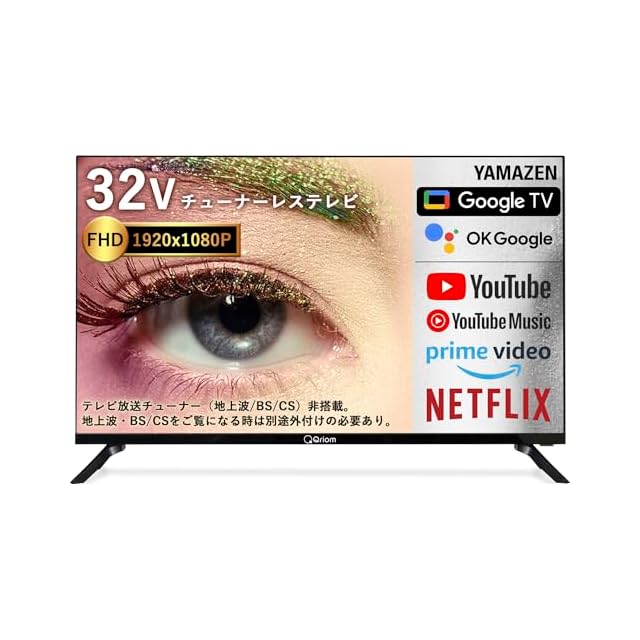 山善 テレビ チューナーレス 液晶 32インチ ネット動画対応 地上波受信なし フルハイビジョン QRK-32TL2K