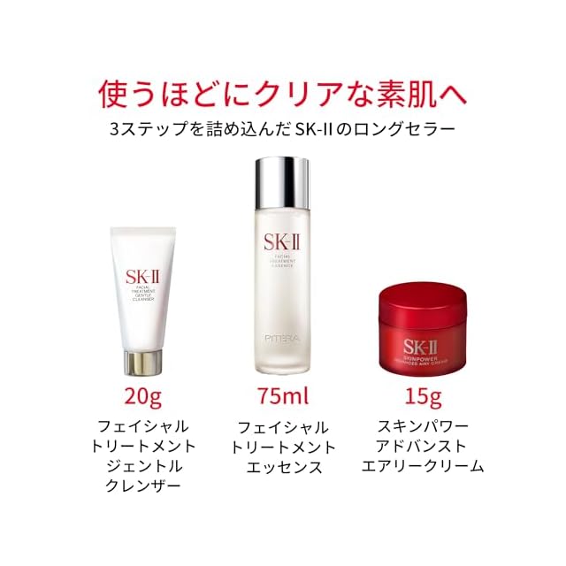 SK-IIをはじめる方にピッタリのトライアルキット。洗顔料、化粧水、乳液のシンプルな3ステップを詰め込んだSK-IIのロングセラー