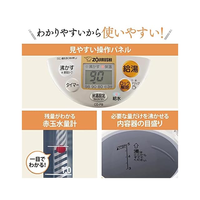 象印マホービン 電気ポット 大容量 5.0L 優湯生 標準タイプ タイマー機能 省エネ設計 グレー CD-PB50AM-HA