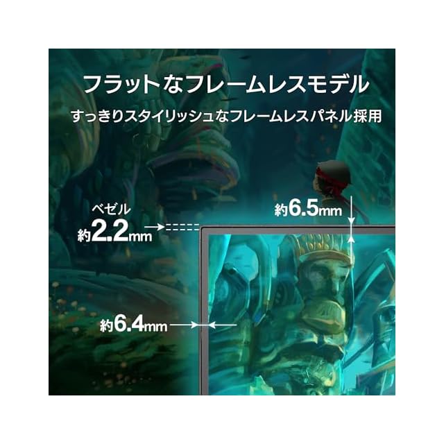 【フレームによる段差がなく、フラットなフレームレスモデル】パネルとフレーム(枠)による段差がないフラットなフレームレスパネルを採用しました。わずか約2.2mmの極細フレームですっきりした印象を与え、マルチディスプレイにもオススメです。スタイリッシュなデザインの液晶ディスプレイは、オフィスにも自室にもマッチします。
