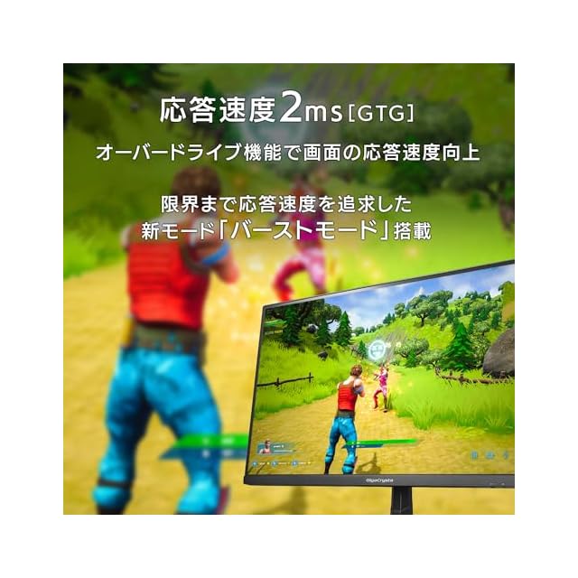 【オーバードライブ機能で応答速度1ms[GTG]を実現】ADSパネルの中でも応答速度の速いパネルを採用!「ダイナミックOD」機能を「トップスピード」に設定することで、応答速度を最大1ms[GTG]まで高めることが可能です。「トップスピード」設定は応答速度を最優先にしたモードのため、映像によっては逆残像や色ズレが目立つ場合があります。画質とのバランスを重視する方には、「レベル3」以下の設定がおすすめです。「レベル3」設定時でも、応答速度は2ms[GTG]と高速で、快適なゲームプレイを実現します。