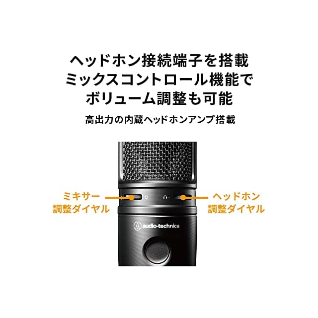 【ミックスコントロール機能とヘッドホンのボリューム調整が可能】マイクで収音した音とPC音源のバランスを調整できるミキサー調整ダイヤルを搭載。また、ヘッドホン出力の音量調整ダイヤルも搭載。画面上だと煩わしい音量調整を手元で簡単に行えます。