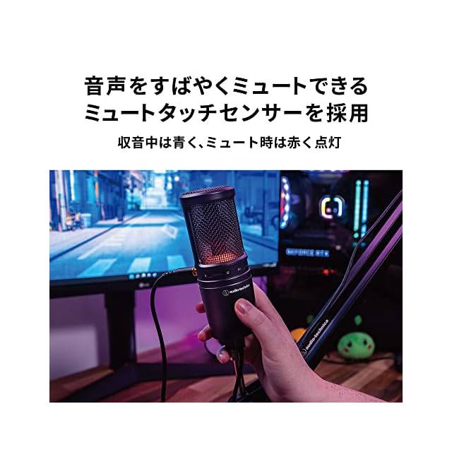 【状態が一目で視認できるミュートインジケーター】収音中は青く、ミュート時は赤く点灯します。センサーをタッチするたびに切り替わります。視認しやすいため、配信中、ゲームプレイ中のミュート切り替えミスを減らします。