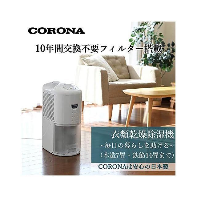 CORONA(コロナ) 衣類乾燥除湿機 【日本生産】 除湿量6.3L(木造7畳・鉄筋14畳まで) コンプレッサー式 10年交換不要フィルター搭載 ホワイト CD-P63A2(W)
