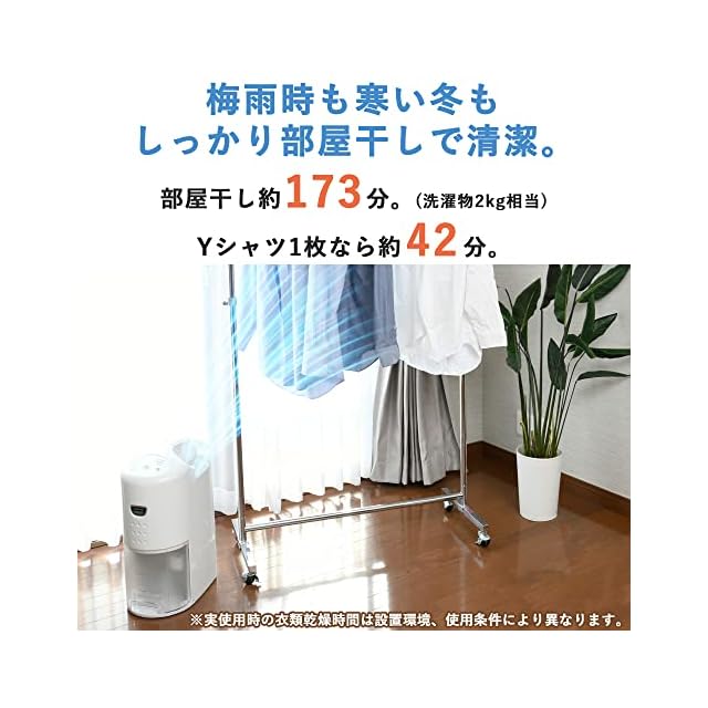 【サーキュレーター一体型運転】除湿ユニットからの乾燥風を大口径24cmのサーキュレーターで増幅し、たっぷりと送風できるので、お部屋の隅々まで乾燥した風をお届けできます。送風ロスが少ないため、よりダイレクトな除湿空気の送風が可能になり、乾燥した風を洗濯物に当てることで乾燥時間を短縮します。
