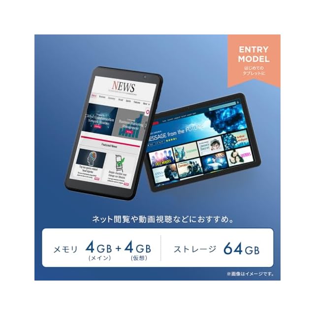 オーバースペックにならず、日常使いにちょうどいいシンプルなタブレットです。ネット閲覧や動画視聴、電子書籍などを楽しむのにおすすめです。(※全てのソフト、アプリケーションの動作をするものではありません。)