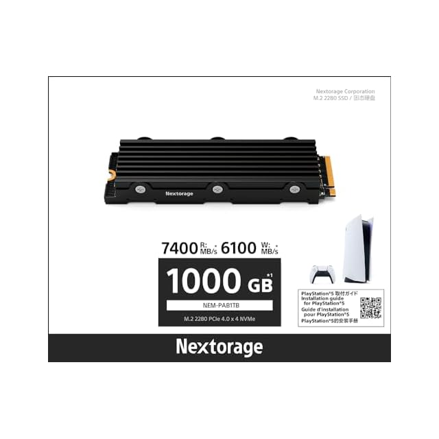 【製品仕様】Nextorage NEM-PAシリーズ PS5対応 ヒートシンク一体型SSD 1TB 最大転送速度(シーケンシャル):読み出し7,400MB/s 書き込み: 6,100MB/s インターフェース:NVMe (PCIe Gen4 x 4), フォームファクタ:M.2 2280 NANDフラッシュ:3D TLC