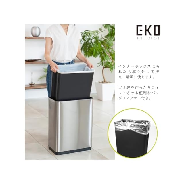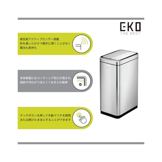 EKOのフラッグシップモデルで、オールステンレスの外観で長くお使いいただけます。フタは静かに開閉する両開きタイプです。