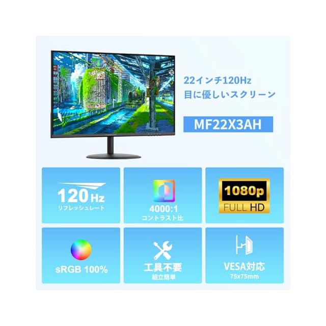 Minifire モニター 21.5インチ pcモニター 120Hz フルhd 非光沢 液晶ディスプレイ Adaptive Sync VESA対応 フレームレス HDMI*2 ブルーライト軽減 チルト調節可 ビジネス用 五年(HDMIケーブル付-MF22X3AH) | つむぎ屋