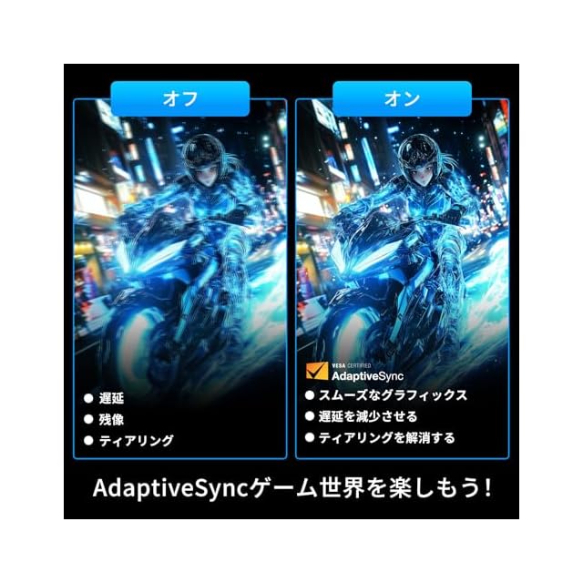 [リフレッシュレート]100Hz、[応答速度]OD 5ms、[傾斜角度調整]前後-5°~15°(+/-2°) 、アイケア、ブルーライト軽減、フリッカーフリー、Adaptive Sync、[ゲームモード] RTS/FPS/RACING/スクリーン アシスタント。HDCP対応しない。