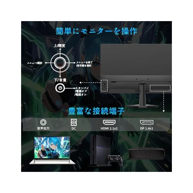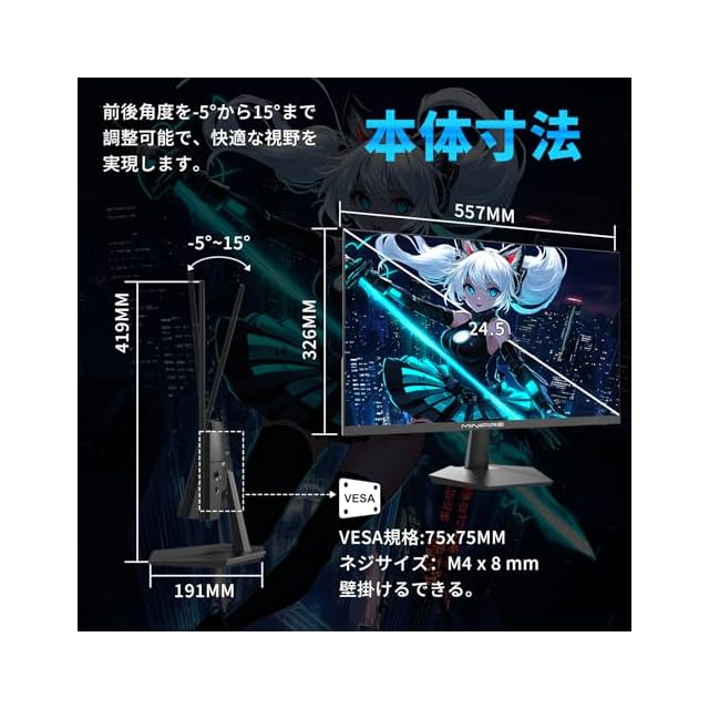 [プロゲーマーとしての経験] 180Hz、[応答速度] OD 1ms、多彩なゲームモード[FPS][RTS][RACING]勝利をロックする[傾斜角度調整] 前後(-5°から15°+/-2°)、178°広視野、アイケア、ブルーライト軽減、フリッカーフリー、目の健康を保つ、ゲームプレイアシス VESA対応(100mm x100mm)長時間のゲームでも快適に調整可能。