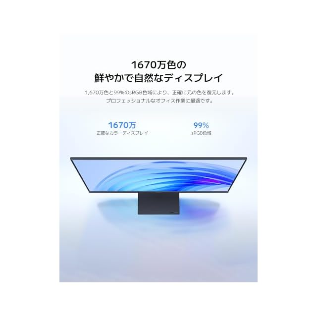 【1670万色の鮮やかでナチュラルな画像】1670万色、最大8ビットの高い色深度、sRGB 99%色域により、高品質で鮮明な画像と、より自然で明るい写真や動画を表示します。