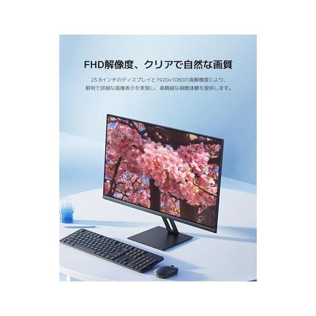 【クリアで自然な画質】23.8インチのディスプレイと1920×1080の高解像度により、鮮明で詳細な画像表示を実現し、高精細な視聴体験を提供します。このモニターは、画像を閲覧したり、テキストを読んだりする際に鮮明な画像を提供し、長時間でも快適な視聴を実現します。