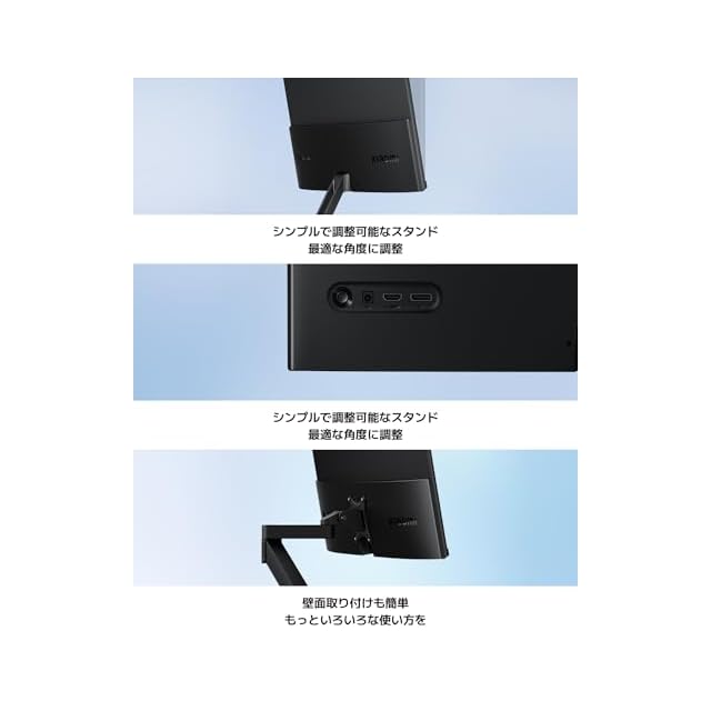 【細部へのこだわり】シンプルで調整可能なスタンドで最適な角度に調整できます。複数のポートに対応、複数デバイスを同時に接続します。VESA75対応、壁面取り付けも簡単です。