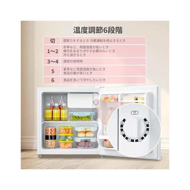 【温度調節】6 段階に温度調節でき、季節や保存量に応じて庫内の温度を調節します。
