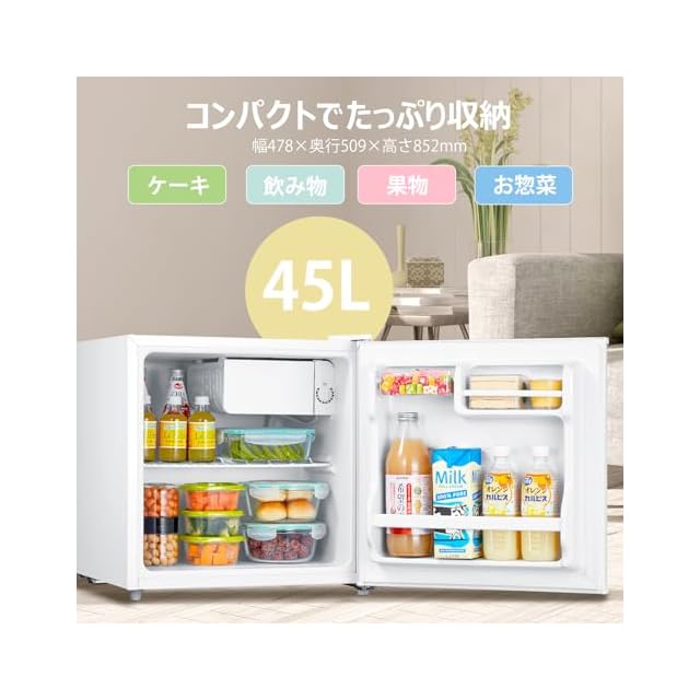【コンパクト設計】本体サイズ:幅472×奥行450×高さ492mm、重量:17KG、容量:45L。どこでも馴染む、ちょうどいいサイズ感、ひとり暮らしの部屋で大活躍です!
