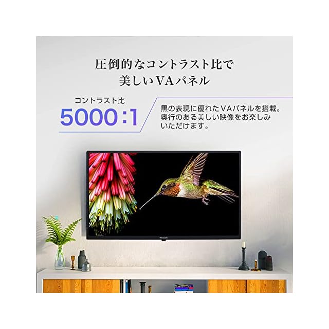 圧倒的なコントラスト比で美しいVAパネル コントラスト比 5000:1。黒の表現に優れたVAパネルを搭載。TNパネルやIPSパネルを遥かに超える高コントラスト。奥行のある美しい映像をお楽しみいただけます。