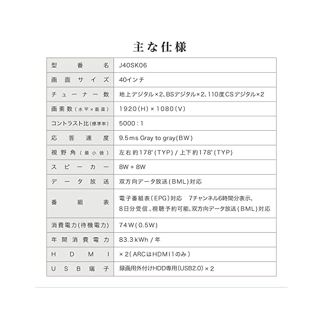 MAXZEN テレビ 40型 液晶テレビ フルハイビジョン 40V 40インチ 裏録画 外付けHDD録画機能 ダブルチューナー 壁掛け対応 地上・BS・110度CSデジタル J40SK06 マクスゼン