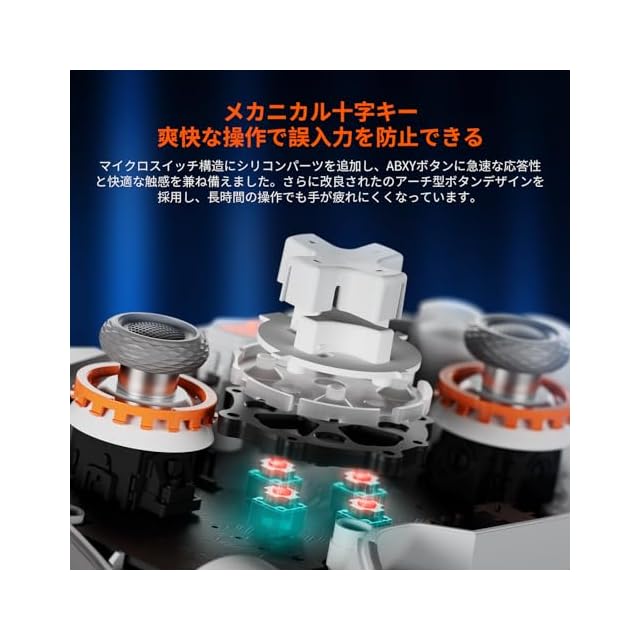 【16個のメカニカルスイッチ搭載】:BLITZ2コントローラーは16個のメカニカルスイッチを搭載し、主要機能ボタンを完全カバー。敏感なトリガーとクリアな打鍵感で、接触不良のリスクを大幅に低減。長時間使用でも安定した性能をします。メカニカルスイッチの設計はeスポーツレベルの応答速度を実現し、押下した瞬間に入力が完了。プレイヤーは緊迫した攻防の中でも一歩先んじた操作が可能です。さらに、メカニカル式十字キーを採用。精密なタクタイルフィードバックにより、方向制御の正確性を確保。格闘ゲームでの連続入力やアクションゲームの素早い方向転換など、あらゆる操作を思いのままにこなせます。