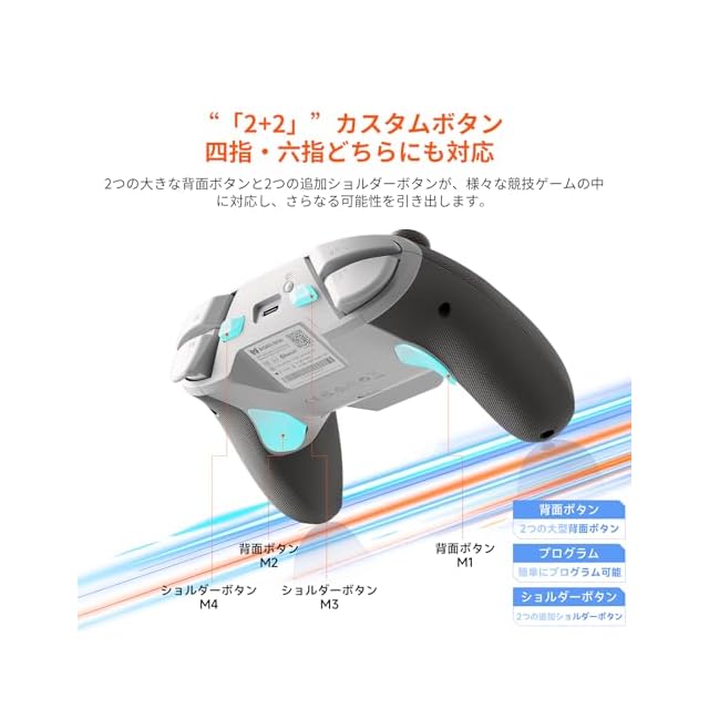 【PC・スマートフォン対応アプリで、マクロボタン自在にカスタマイズ可能!】: BLITZ2 コントローラーは、ゲームプレイにさらなる自由度をもたらします。PCおよびスマートフォンに対応した専用アプリを使えば、背面に配置された2つの大きなボタンと、2つのショルダーボタンを含む4つのカスタムキーを、自分好みに設定することが可能です。このカスタムキーは、ゲーム内での操作効率を大幅に向上させ、瞬時にコマンドを実行できるマクロ設定もサポートしています。アプリを使用することで、特定の動作を一つのボタンに集約するマクロ機能を簡単に設定でき、FPSゲームやアクションゲームなど、反応速度が求められるシーンで圧倒的な優位性を発揮します。また、スマートフォンから直接設定を変更できるため、プレイ中でも素早く調整が可能です。PC版アプリでは、ファームウェアのアップデートも手軽に行え、常に最新のパフォーマンスを維持できます。これにより、ユーザーは自分のプレイスタイルに最適化された設定を簡単に導入でき、どのようなゲームでもプロフェッショナルな操作感を楽しむことができます。