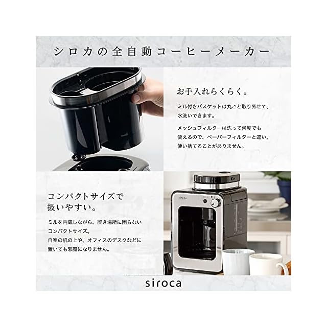 「蒸らし」工程で、さらに雑味のないおいしいコーヒーに コーヒー粉は油脂分を含んでいるので、水分をはじいてしまいます。最初に少量のお湯を注いで蒸らすことにより、この油脂と水分がなじんで粉全体にお湯がいきわたり、浸透しやすくなります。 シロカ全自動コーヒーメーカーでは蒸らし工程をプログラムすることで、コーヒー本来のおいしさを抽出し、おいしいコーヒーが淹れられるようになりました。