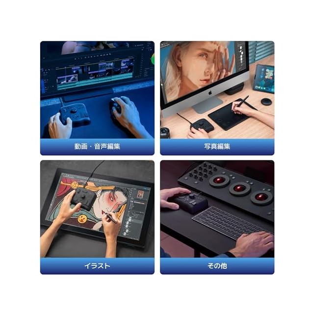 【ハードウェアとソフトウェアの幅広い互換性】TourBoxはPhotoshop、Lightroom、Premiere Pro、Illustrator、DaVinci Resolve、Final Cut Pro、Clip Studio Paint、Camera Raw、Capture One Pro、SAIなどキーボードショートカットを使うMacとWindowsのソフトウェアほぼ全てに対応できます。