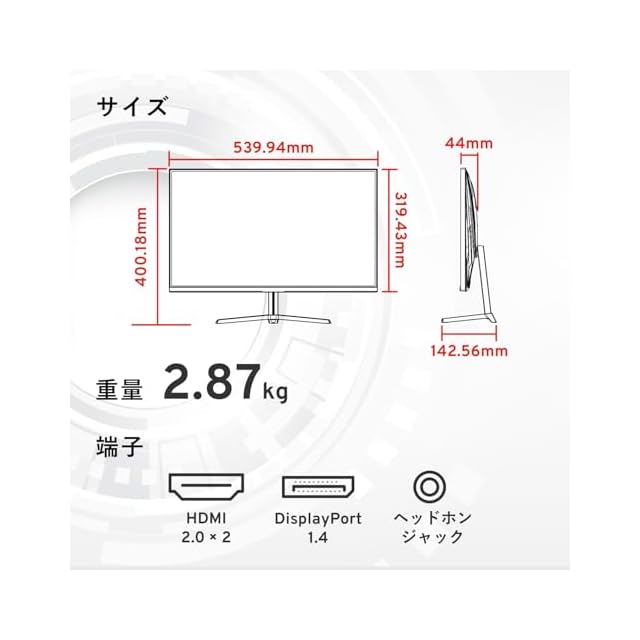 [端子] HDMI2.0(200Hz) ×2 / DisplayPort1.2(200Hz) ×1 / ヘッドホンジャック