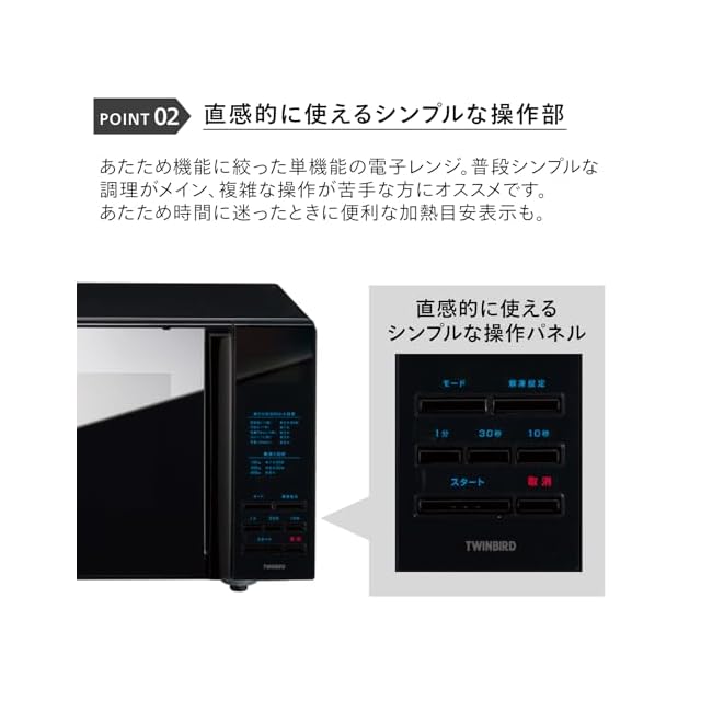 TWINBIRD(ツインバード) 電子レンジ ヘルツフリー 単機能 一人暮らし フラットテーブル 20L 4段階出力切替 600W 15分タイマー ミラーガラス ブラック DR-4259B | つむぎ屋
