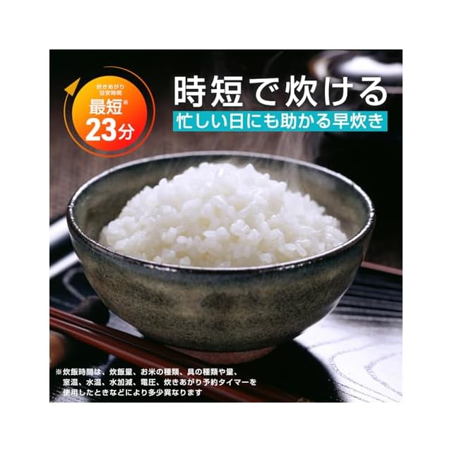 【便利な炊飯機能】エコ炊き:白米メニュー炊飯時に比べて約23%電力ダウン!/早炊き:お茶碗1杯分(0.5合)を約24分で炊きあげ/冷凍ご飯:レンジ加熱でも“炊きたて”のようなおいしさ