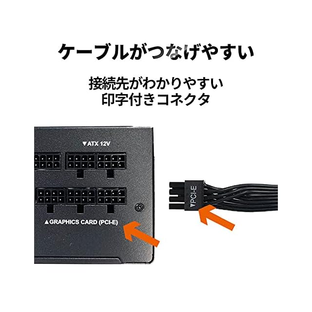 【ゲーミングPCの初自作におすすめ!】コネクタと電源本体の印字により接続しやすく、自作初心者にもおすすめ。